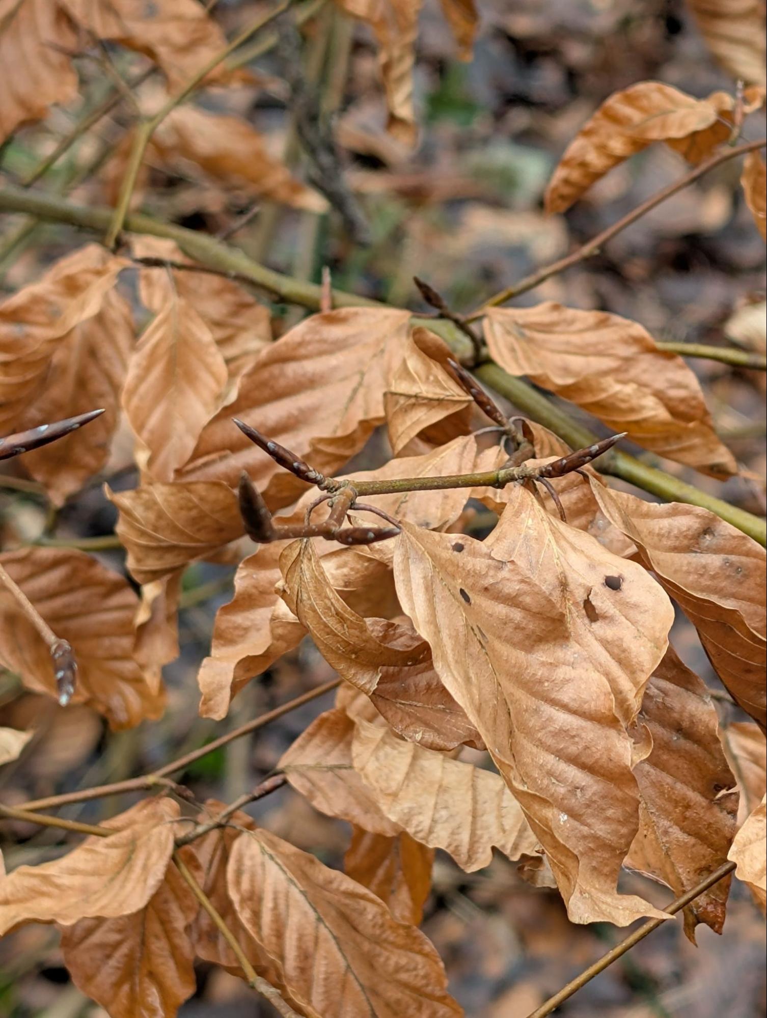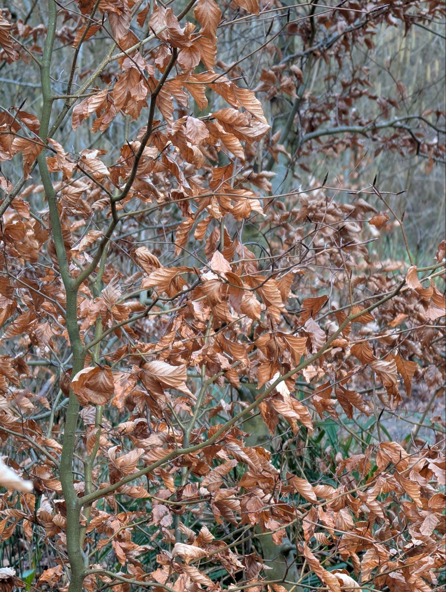 Si vous observez un jeune hêtre en hiver, vous verrez qu’il est encore couvert de feuilles rousses et sèches.