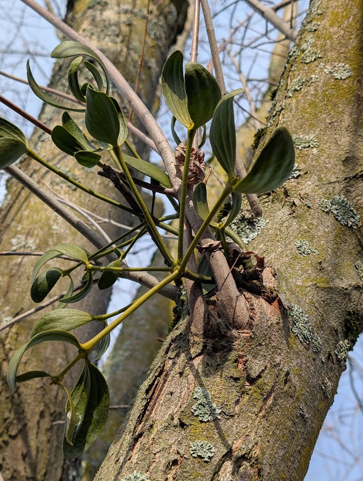 C’est ce qu’on appelle un hémi-parasite : il emprunte l’eau de son hôte, mais travaille tout seul avec le soleil pour rester vert quand la nature dort.