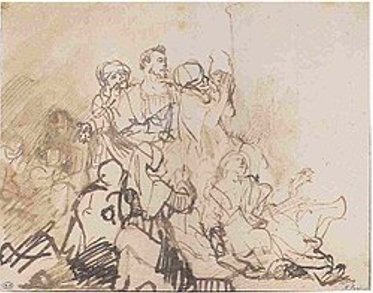 Étude au brou de noix d’un groupe de malades (ca. 1645-1649, Kupferstichkabinett Berlin)